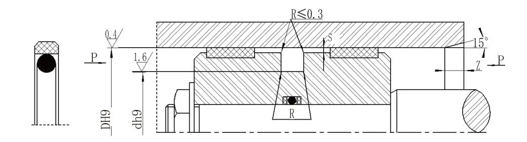 பிஸ்டன்களுக்கான (போர்) சதுர கூட்டு முத்திரை (கிளைட் ரிங் சீல்) PTFE-நிரப்பப்பட்ட செவ்வக சீல் வளையம் மற்றும் O-வளையத்தைக் கொண்டுள்ளது. இது ஹைட்ராலிக் இயக்கத்தில் இருதரப்பு அழுத்த சீல் செய்வதற்கு ஏற்றது. ஓ-மோதிரம் ரேடியல் விசையை வழங்குகிறது மற்றும் முத்திரை மோதிர உடைகளுக்கு ஈடுசெய்கிறது. இது பொதுவாக வழிகாட்டி வளையத்துடன் இணைந்து பயன்படுத்தப்படுகிறது. 30mm க்கும் குறைவான சிலிண்டர் விட்டம், ஒரு பிளவு (திறந்த) பள்ளம் வடிவமைப்பு பயன்படுத்தப்பட வேண்டும்.