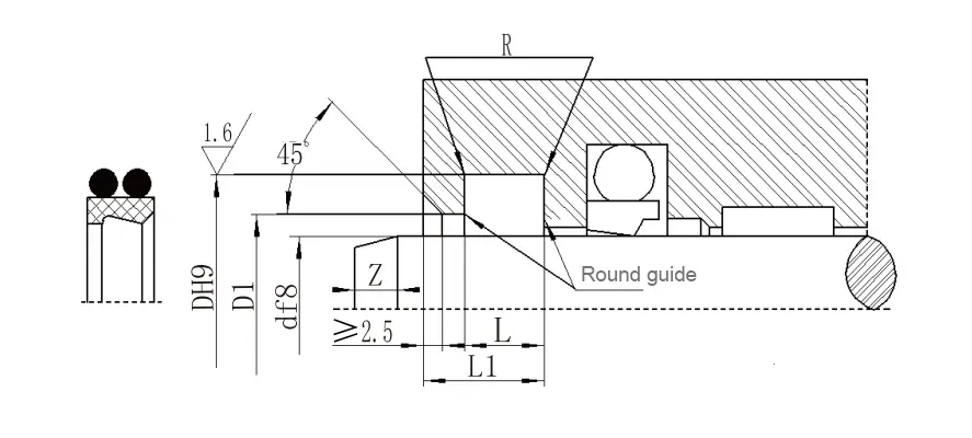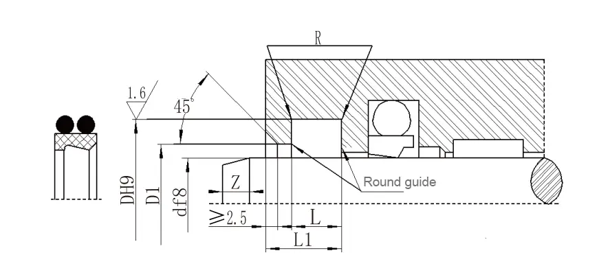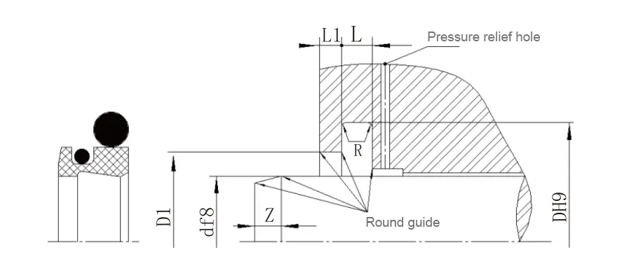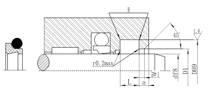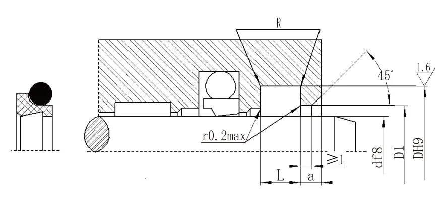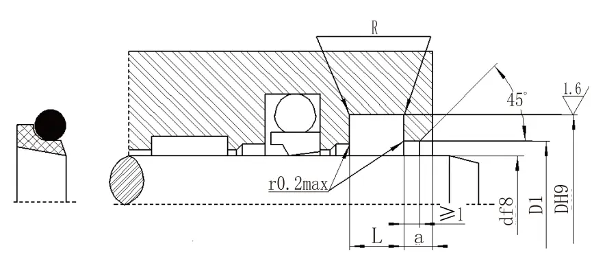 தண்டு விட்டம் வரம்பு டி எஃப் 8 | பள்ளம் விட்டம் DH9 | படி விட்டம் டி 1 எச் 11 | பள்ளம் அகலம் L+0.2 |