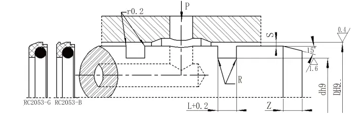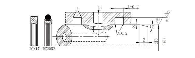 RC2054| துளை வரம்பு டி எச் 9 | பள்ளம் விட்டம் டி எச் 9 | பள்ளம் அகலம் எல்+0.2 | ரேடியல் அனுமதி கள்அதிகபட்சம் | வட்டமான மூலைகள் Rஅதிகபட்சம் | சேம்பர் Zநிமிடம் | |