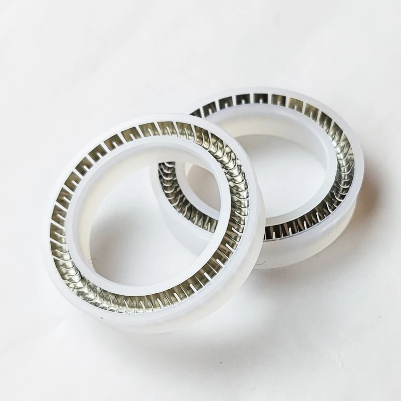 RC65 ஸ்பிரிங்-எனர்ஜைஸ்டு சீல் ஸ்டெயின்லெஸ் ஸ்டீல் ஸ்பிரிங் மற்றும் உயர் செயல்திறன் கொண்ட பிளாஸ்டிக் ஆகியவற்றால் ஆனது. துருப்பிடிக்காத எஃகு நீரூற்று V-வடிவ நீரூற்று அல்லது O-வடிவ நீரூற்றாக இருக்கலாம்.