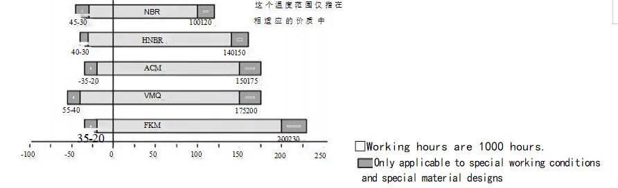 சீல் விளைவை பாதிக்கும் டஜன் கணக்கான காரணிகள் உள்ளன. எண்ணெய் முத்திரையைத் தவிர, அதன் பொருள் மற்றும் அமைப்பு, நடுத்தர, வெப்பநிலை, அழுத்தம், உயவு, வேகம் மற்றும் மேற்பரப்பு கடினத்தன்மை போன்ற பிற காரணிகளும் சீல் விளைவை நேரடியாக பாதிக்கின்றன, மேலும் இந்த காரணிகள் பெரும்பாலும் ஒருவருக்கொருவர் தொடர்பு கொள்கின்றன. பின்வரும் விளக்கப்படங்கள் பயனர் குறிப்புக்காக மட்டுமே.