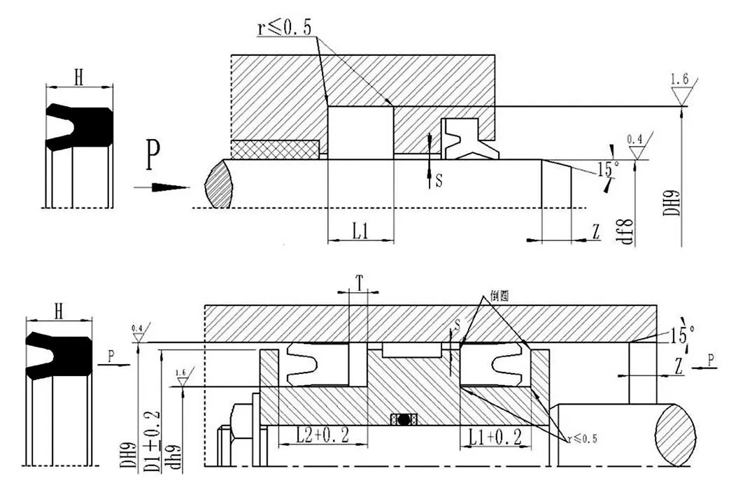 வரிசைப்படுத்தும் எடுத்துக்காட்டு: தண்டு மற்றும் துளைக்கான உலகளாவிய முத்திரை: UN50x65x10PU(dxDxH) + பொருள் குறியீடு